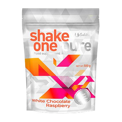 Shake One Pure (500 g) – proteinski prah s okusom bijele čokolade i maline, sa šećerom i sladilima